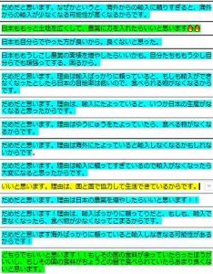 日本は近年食生活が欧米化したこともあり、海外から大量の食料を輸入するようになりました。今日はこの現状について全員で意見を出し合いました。