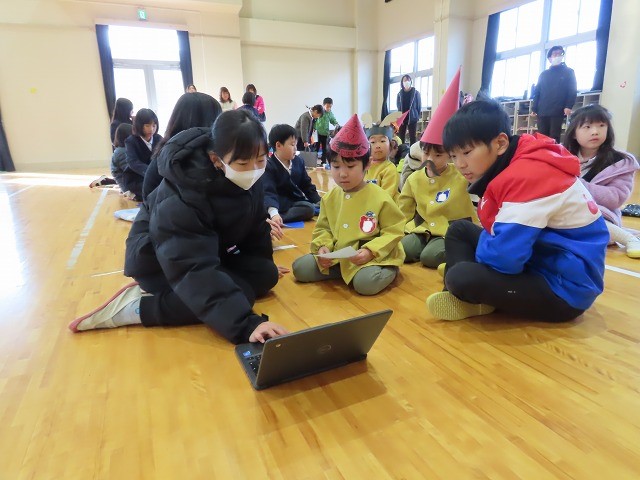 来年から学校の最高学年として学校を引っ張っていく練習として、5年生の子どもたちが、12月17日(火)に、幼稚園の子どもたちを招待してお楽しみ会を計画しました。5年生がリーダーとなり「ドラえもん」の劇やみんなで楽しめるゲームを企画しました。当日は、劇や「じゃんけん列車」「箱の中身はなんだろな」といったゲームで大盛り上がり!幼稚園の子どもたちも笑顔いっぱいで参加してくれました。